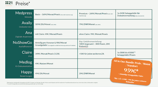 Mindestvertraglaufzeit Claire PVS zwei Jahre, alle anderen Applikationen ein Jahr. Preistabelle Stand März 2026 (Preise werden sich über die Zeit erhöhen. Momentan noch Go To Market Preise. )